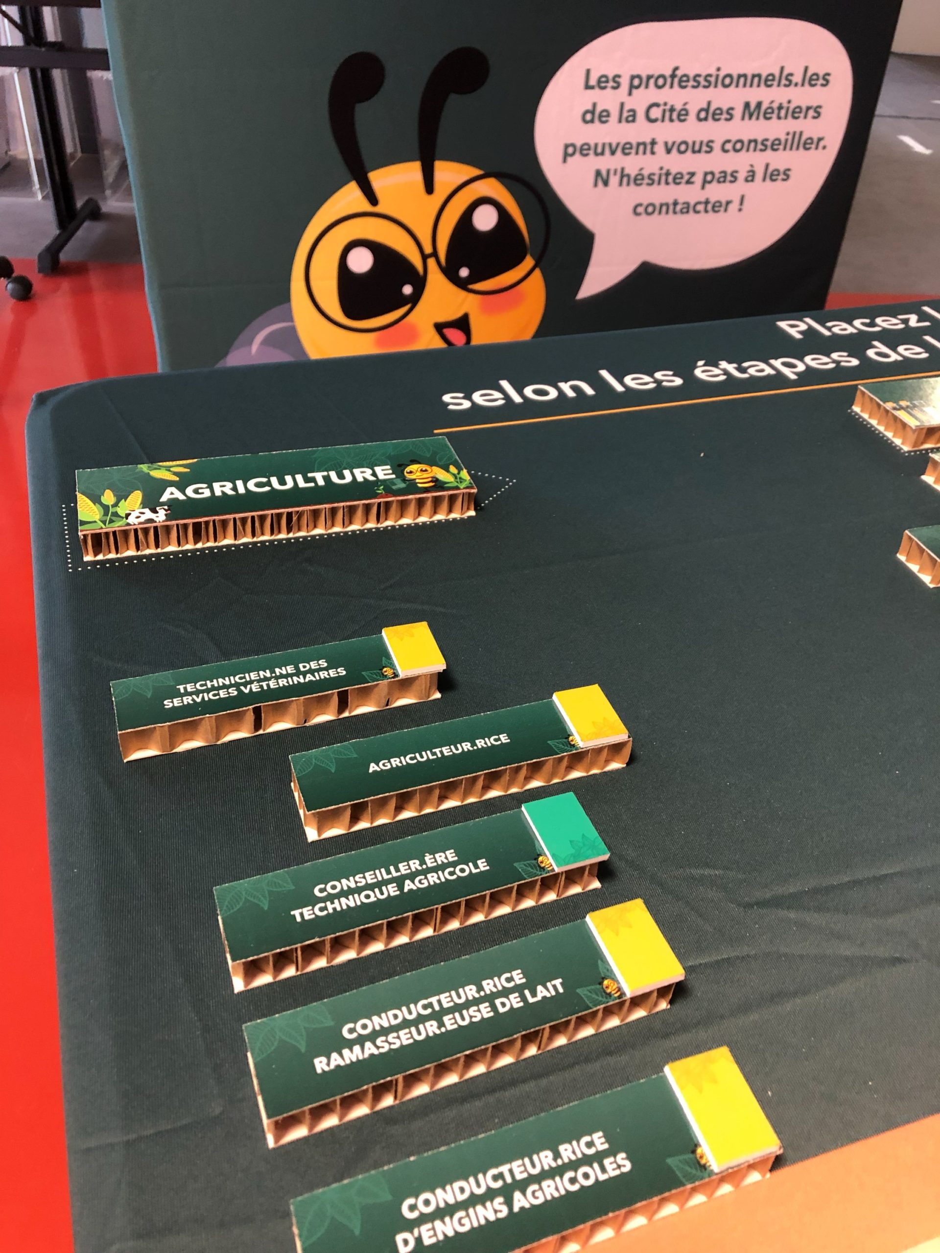 Le parcours de l’exposition est animé par un.e conseiller.ère à la vie professionnelle de la Cité des Métiers, qui accompagne les participants dans leur découverte métiers et leurs questionnements.